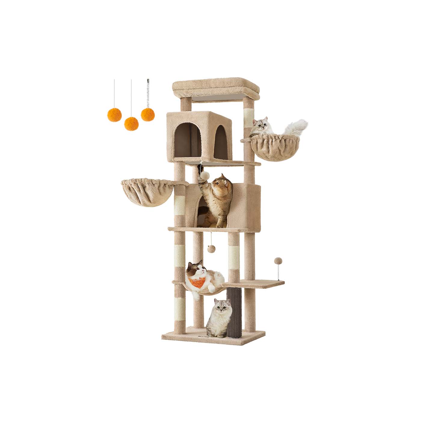 • 【175 CM HOCH, MEHRSTUFIGER SPASS】Ihre Lieblinge können auf diesem Kratzbaum ausgiebig spielen und entspannen. Mit 2 Höhlen, 2 Liegemulden, einer gemütlichen Hängematte, einer großen Plattform und attraktiven Spielzeugen ist er ideal für Mehrkatzenhaushalte